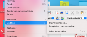 • Ciquez sur “Gérer les modèles” dans le sous-menu “Modèles” du menu “Fichier” :