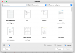 3. Intégrez ensuite le fichier pageWindows.ott ou pageMacOsX comme modèle dans LibreOffice. Pour ce faire vous devez :